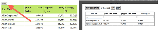Stoyan Stefanov wrote a bookmarklet to process tables on the internet. It adds a little โpopโ button that expands to a full-screen view with sorting, editing and export to csv and json.